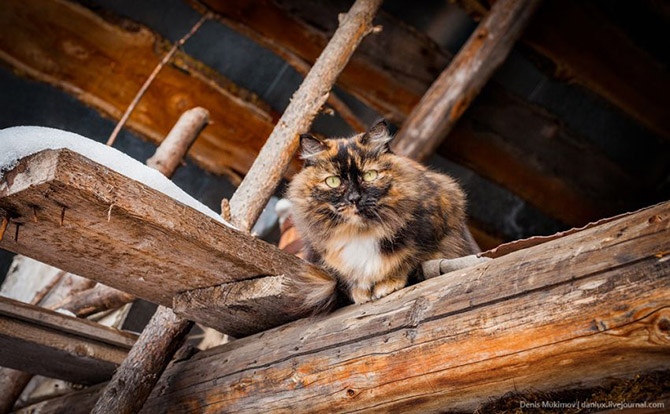 Вокруг красота, тишина и чистейший воздух. Мир Агафьи Лыковой не более одного квадратного километра: с одной стороны бурная река Еринат, с другой – крутые горы и непроходимые леса, простирающиеся до самого горизонта. Лишь в северном направлении Агафья немного удаляется от своей избы и доходит до лугов, где она срезает траву и ветки для своих коз. Кошек здесь штук двадцать. Они в тайге до того осмелели, что, по словам Ерофея, даже змей давят. Кошки на заимке быстро плодятся и всем приезжающим обязательно предлагаются котята. В этот раз от «кошечки в заплаточках» мы отказались. Добродушного Ерофея и строгую Агафью мало что связывает. Они здороваются друг с другом, но редко разговаривают. У них возник конфликт на почве религии, и Ерофей не готов следовать правилам Агафьи. Он сам верующий, но не понимает, что может иметь Бог против консервов в железных банках, почему пенопласт – дьявольский предмет и почему огонь в печке надо разжигать только лучиной, а не зажигалкой.