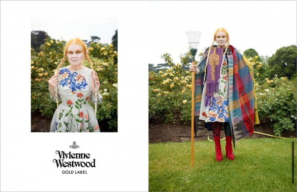 Новая рекламная кампания Vivienne Weswood удивляет и даже немного пугает. Конечно, Вивьен всегда творила нестандартно, но все равно ей удается каждый раз удивлять нас вновь. На этот раз она сама выступила одной из героинь рекламной кампании. Тугие косы, выбеленное лицо, садовые инструменты… Если удастся отвлечь внимание от всего этого, то можно увидеть очень интересные вещи — ярко-красное платье, наряд с цветочным узором, брючные костюмы, свитеры с геометрическими принтами, оригинальную обувь. Осень будет веселой и слегка эпатажной сообщает *Настроение* по материалам сайта *StarLook*
