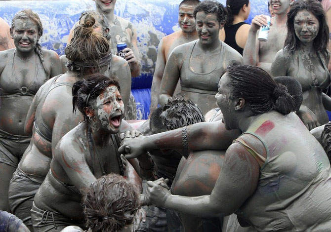 В Южной Корее есть город Борионг, ставший с 1998-го года родиной и традиционным местом проведения грязевого фестиваля. На окраине города выкапывается большая канава, превращаемая затем в котлован жидкой грязи, после этого на улицах города устанавливаются резервуары, куда на грузовиках эта грязь доставляется. Желающие могут от души поваляться в грязи сами и окунуть туда с головой своих друзей, родных или просто посторонних людей. Даже если вы не планировали купаться в грязи, шанс, что вас в этот день забрызгают грязью, огромен, и обижаться на подобное поведение не принято. Фестиваль стал популярен среди туристов со всего мира и начиная с 2006-го года ежегодно собирает до полутора млн гостей.