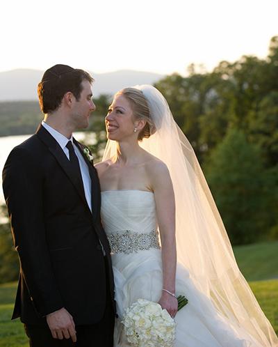 Свадьба единственной дочери бывшего президента США проходила под грифом строгой секретности. Челси Клинтон и банкир Марк Мезвински сочетались браком в городе Райнбеке, штат Нью-Йорк. Чтобы папарацци не смогли проникнуть на церемонию и вечеринку, ведущие к городу дороги были закрыты, как и воздушное пространство над ним, а гостям выдавались специальные идентификационные браслеты. Как настоящая американская невеста, Челси предпочла платье от дизайнера Веры Вонг — давней приятельницы семьи Клинтон. Над изысканным угощением трудились три крупные кейтеринг-компании, услуги которых обошлись в общей сложности в $750 тысяч.