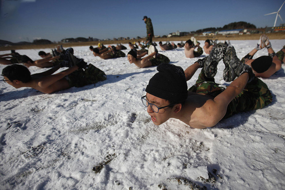 В такой позе нужно провести некоторое время на снегу. (REUTERS/Kim Hong-Ji)