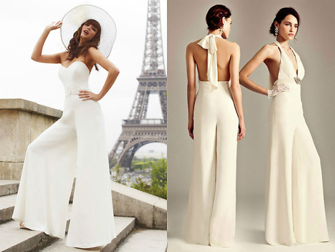 Элегантный, изысканный светлый брючный костюм или комбинезон – прекрасная альтернатива традиционному свадебному платью.