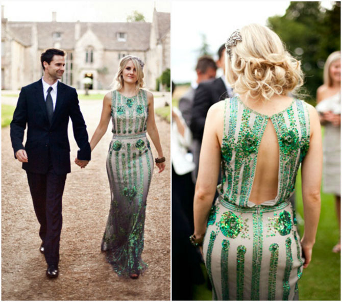 Оригинальное свадебное платье, расшитое пайетками изумрудного цвета – прекрасный способ подчеркнуть свою индивидуальность.