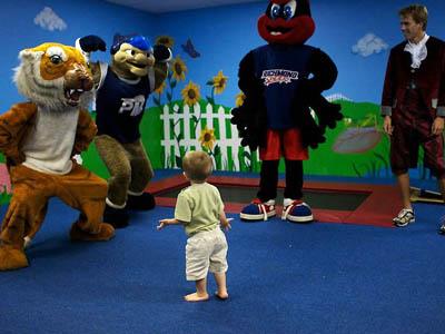 Учебный лагерь для талисманов спортивных команд в Пенсильвании, где школьники и студенты учатся «ремеслу талисмана» и улучшают свои навыки, пытаясь рассмешить детей.