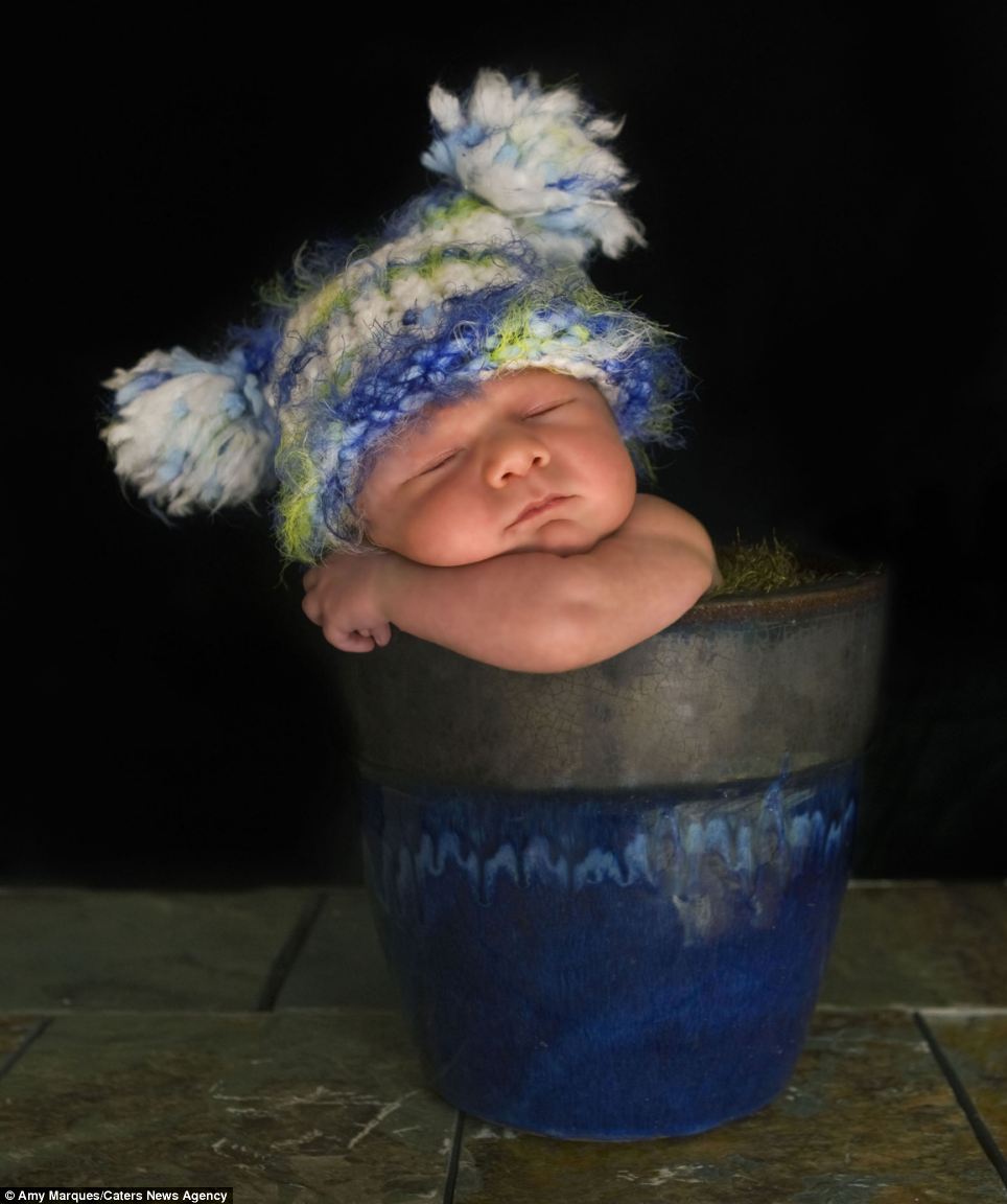 Эти милые шапочки для новорожденных согреют вашего малыша в холодные дни. Фотограф Эми Маркес сделала серию фотографий с мега-милыми малышами и малышками в супер-симпатичных шапочках. Малышей фотографируют во сне или когда они готовы уснуть сообщает *Настроение* по материалам сайта *Новости в фотографиях* Всем детишкам на этих фото – не больше 10 дней. Они провели с Эми около трех часов, из которых она снимала их лишь несколько минут, а остальное время – ждала, пока они заснут. «Фотографировать новорожденных в таком стиле нелегко, особенно, когда они голенькие», — говорит Эми. «Большинство нужно постоянно согревать, так что мне приходилось включать обогреватель или даже класть под них подушку с подогревом». «Большую часть времени на фотосессии занимает смена подгузников, кормление и баюканье, ведь главный тут – ребенок». «У меня был 4-дневный новорожденный, который отказывался засыпать горизонтально. Единственный раз, когда он мог заснуть – это когда мама держала его в вертикальном положении. «Тогда я спросила, нет ли у мамы большого цветочного горшка». «Ее муж был садоводом, поэтому мы быстро нашли подходящий цветочный горшок, в котором малыш мог спать вертикально».