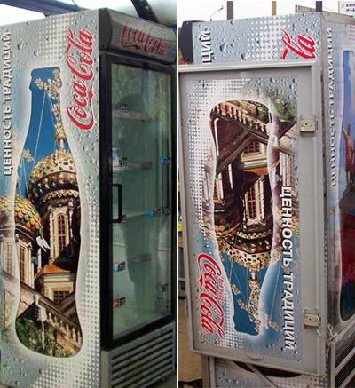 Производитель безалкогольных напитков Coca-Cola при оформлении рекламы в Нижегородской области, Россия, использовал изображения православных храмов, чтобы «продемонстрировать свою позицию по сохранению объектов культуры и искусства». Местные церковники углядели в этом намеренное оскорбление, а некоторые и вовсе обвинили бренд в сатанизме. Скандальную рекламу пришлось отозвать.