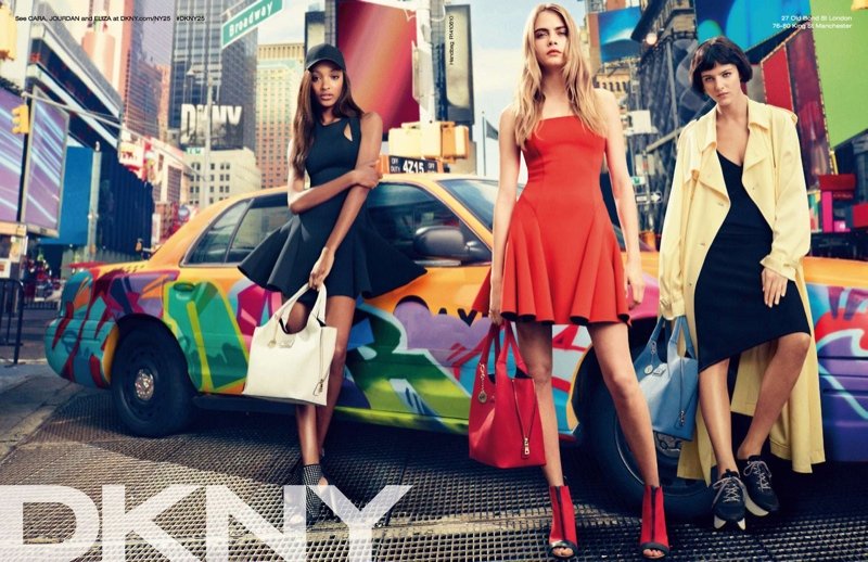 Маленькое черное платье с кроссовками, мешковатый джинсовый комбинезон со строгим жакетом мужского кроя, монохромный тренч с полупрозрачной юбкой и многие другие интересные сочетания можно увидеть в новой рекламной кампании сезона весна-лето 2014 у бренда DKNY. Имиджи уже в знакомой нам постановке — суетливый Нью-Йорк с высокими зданиями и символом города — желтым такси. В съемках приняли участие одни из лучших и самых востребованных моделей — Кара Делевинь, Джордан Данн и Элиза Камминз, сообщает *Настроение* по материалам сайта *StarLook*