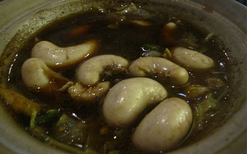 Этот суп очень похож на наш куриный суп с лапшой за исключением того, что его готовят не из куриного мяса, а из петушиных яичек. Яички и овощи варятся до готовности. Яички имеют кремовую консистенцию внутри, они очень мягкие, чем-то напоминают тофу, но с твердой кожей, как у сосисок. Некоторые сравнивают их с вареными яйцами, имеющими вкус заварного крема. Яички, как оказалось, имеют хорошие побочные эффекты, например, они благоприятно сказываются на коже женщин и увеличивают потенцию у мужчин.
