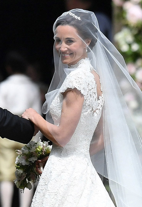 Свадьба 33-летней Пиппы Миддлтон (Philippa Charlotte «Pippa» Middleton) и 41-летнего Джеймса Мэттьюза прошла в церкви святого Марка ХІІ века. Сестра герцогини Кэмбриджской появилась перед гостями в роскошном белоснежном платье, украшенном кружевами и с небольшим вырезом на спине, в нежной тиаре и длинной фате. Дизайнером свадебного наряда стал Giles Deacon, чье имя почти до последнего дня держалось в секрете.