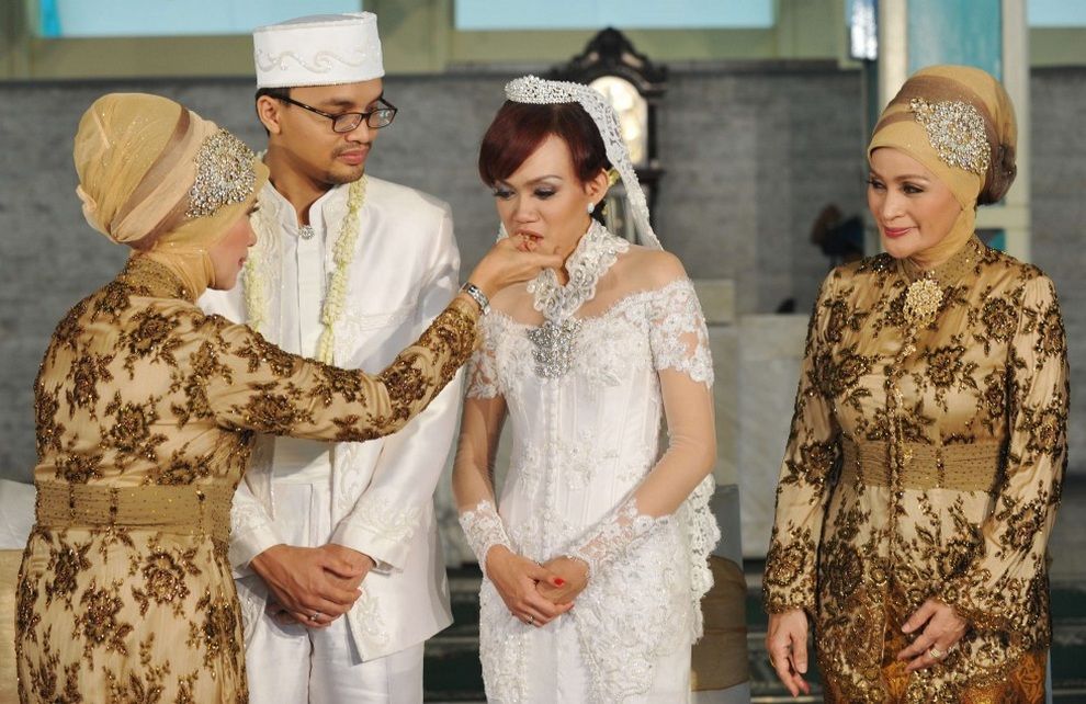 Мусульманская свадебная церемония в мечети Джакарты, Индонезия. (Adek Berry/AFP/Getty Images)