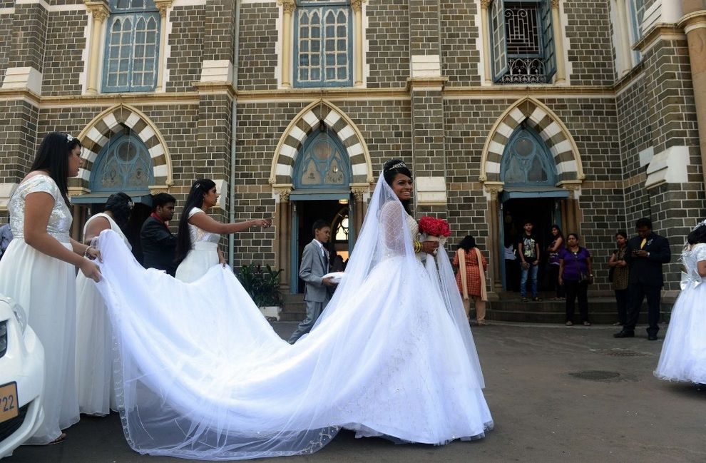 Невеста направляется в храм на массовую свадьбу, Мумбаи, Индия. (Indranil Mukherjee/AFP/Getty Images)