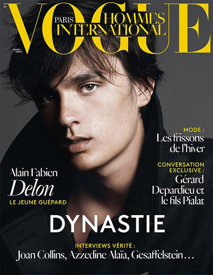 Алан Фабьен Делон (Alain Fabien Delon), сын легендарного французского актера Алена Делона, появился на обложке Vogue Hommes International. Фотографировал Делона-младшего Дэвид Симс (David Sims). Также в осенне-зимнем номере появились Шон О`Прай (Sean O’Pry), Клемент Шаберно (Clement Chabernaud), Паоло Анкизи (Paolo Anchisi) и другие звезды мужской модельной сцены сообщает *Настроение* по материалам сайта *Etoday*