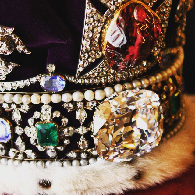 Иногда королеве приходится надевать корону. Это имперская церемониальная корона, изготовленная к коронации королевы Виктории в 1838 году. Королева надела ее на открытие парламента.