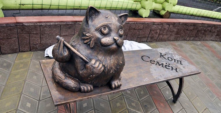В 1987 году семья мурманчан Синишиных потеряла кота Семена, возвращаясь из Москвы, и вернулась в Мурманск «осиротевшей». Однако строптивый кот не смирился с таким ходом событий, шесть лет провел в скитаниях, чтобы вернуться домой, и наконец добрался. Случай оказался таким незаурядным, что про Семена написали в мурманских газетах, сняли короткометражный фильм «История любви», а уже в 2012 году установили ему памятник. Теперь грустный бронзовый кот с узелком сидит на скамейке у Семеновского озера в Мурманске: говорят, если его почесать за ухом и загадать желание, оно сбудется.