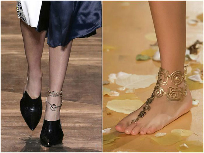 Конечно, весной девушки уделяют особое внимание не только маникюру, но и педикюру. Тем более, что в этом году свой взор на него обратили и эксперты моды. Украшать ноги предложили золотыми цепями и аксессуарами в этническом стиле.