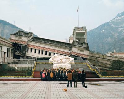 На фото — Туристы у разрушенного здания школы в городе Сюанькоу, провинция Сычуань, на месте гибели около 300 человек в результате землетрясения, 2009 год.
