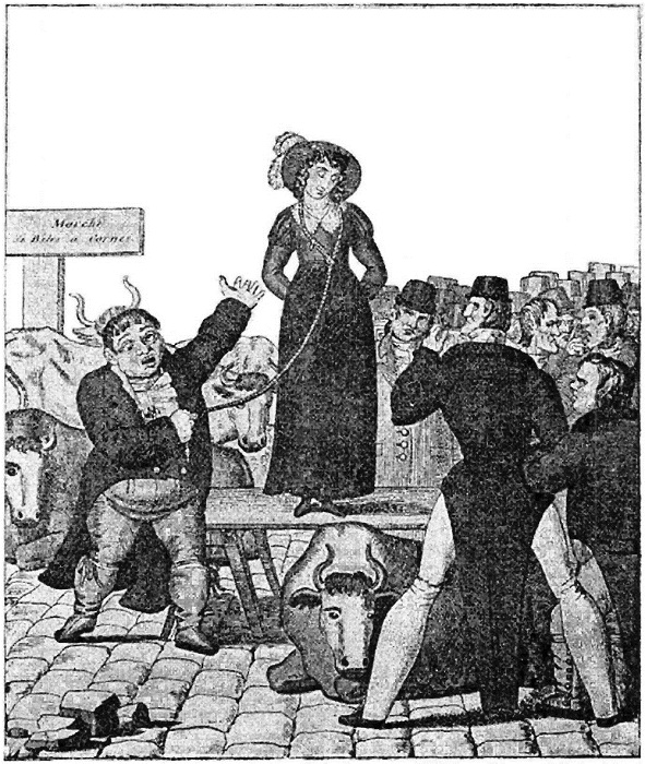 Французская гравюра 1820 года об английской продаже жены. | Фото: todayifoundout.com.