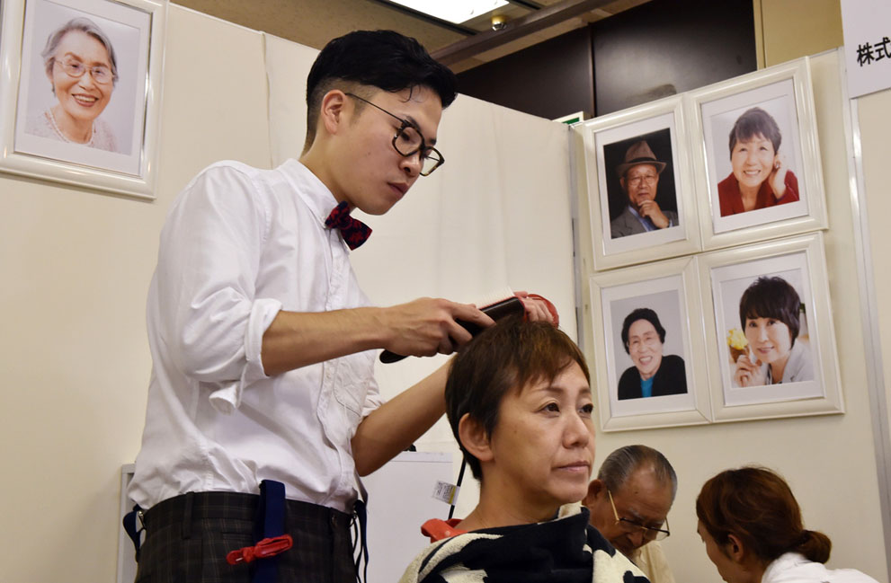 Женщина посещает парикмахерскую, перед тем как сделать фотографию на свое надгробие.