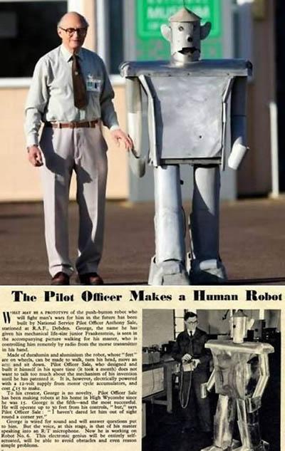 19-летний Тони Сэйл купил человекообразного робота на распродаже за $20 после Второй мировой войны. Через 45 лет отставной офицер Королевских войск Великобритании достал своего железного «друга», смазал маслом, поменял батарейки и… робот пошел!