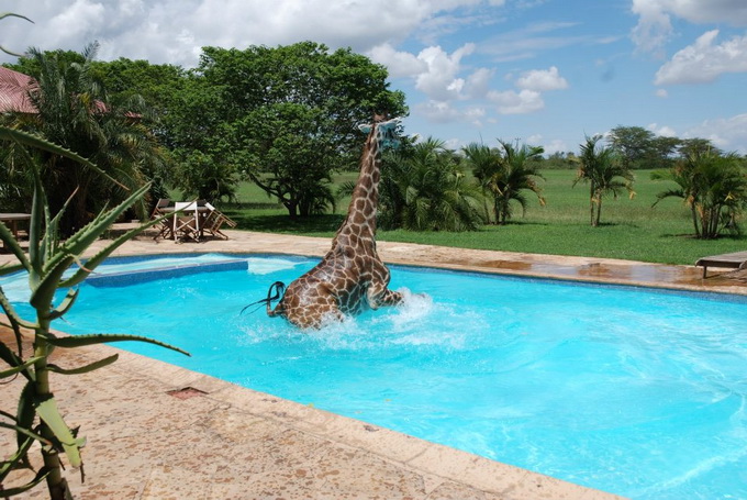 Вы когда-нибудь видели как жираф купается в бассейне? Фото