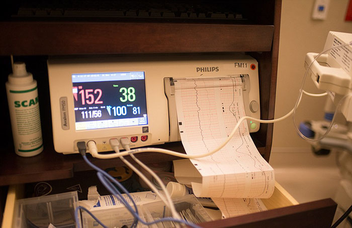 У меня были схватки в течение недели, затем в 3 ночи отошли воды. Мы схватили вещи, камеру и поехали в больницу. Когда добрались, меня всю трясло и я думала *Нет, я не смогу удержать камеру*.