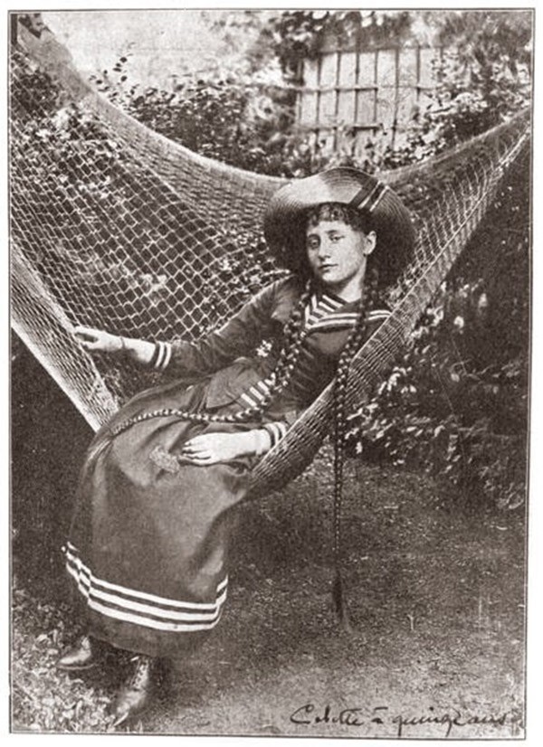 Длинная коса в 1,58 м была у Сидони-Габриэль Колетт, или просто Colette, известной французской писательницы, пока она ее не отрезала в возрасте 29 лет. Здесь на фото она еще девочка 15 лет (1893).
