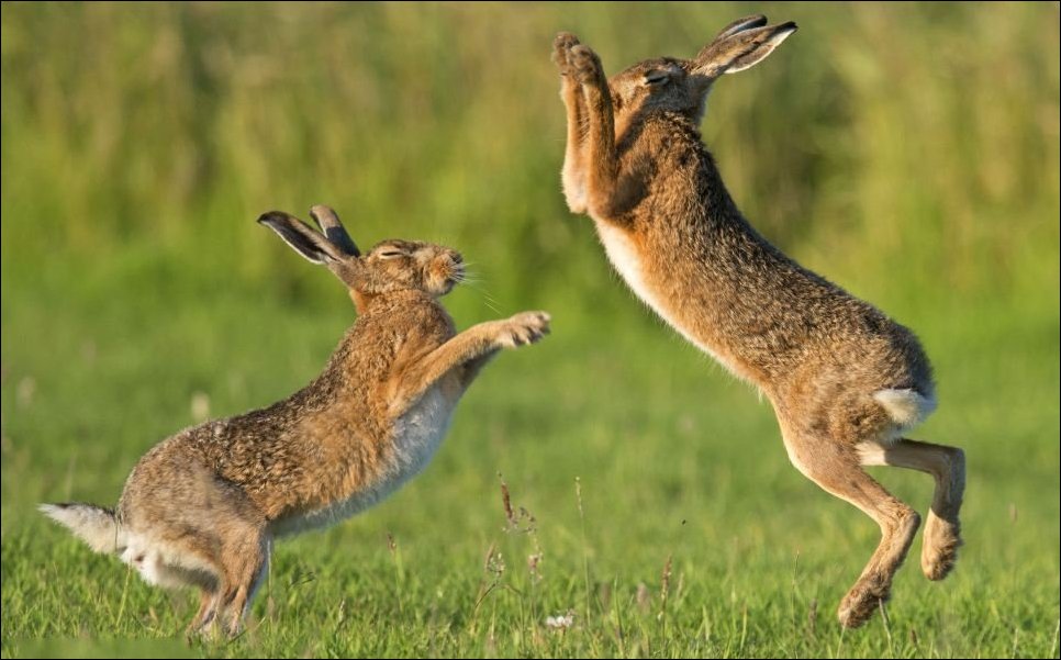 Жестокие брачные танцы самых обычных зайцев. Фото
